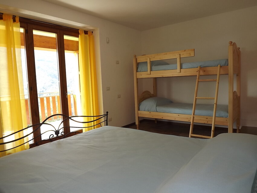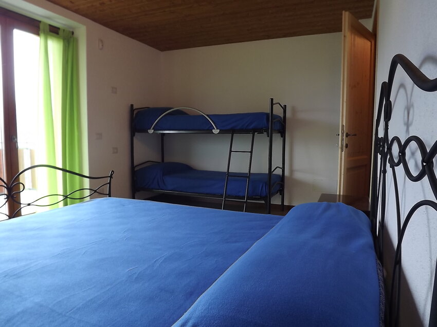 Dispone di una camera con letto matrimoniale e letto a castello.